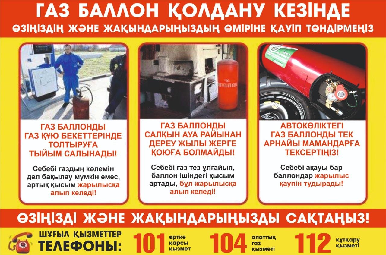 Құрметті тұрғындар! Газ — ыңғайлы әрі үнемді, бірақ қауіп төндіруі де мүмкін. Сондықтан қауіпсіздік ережелерін қатаң сақтаңыз!